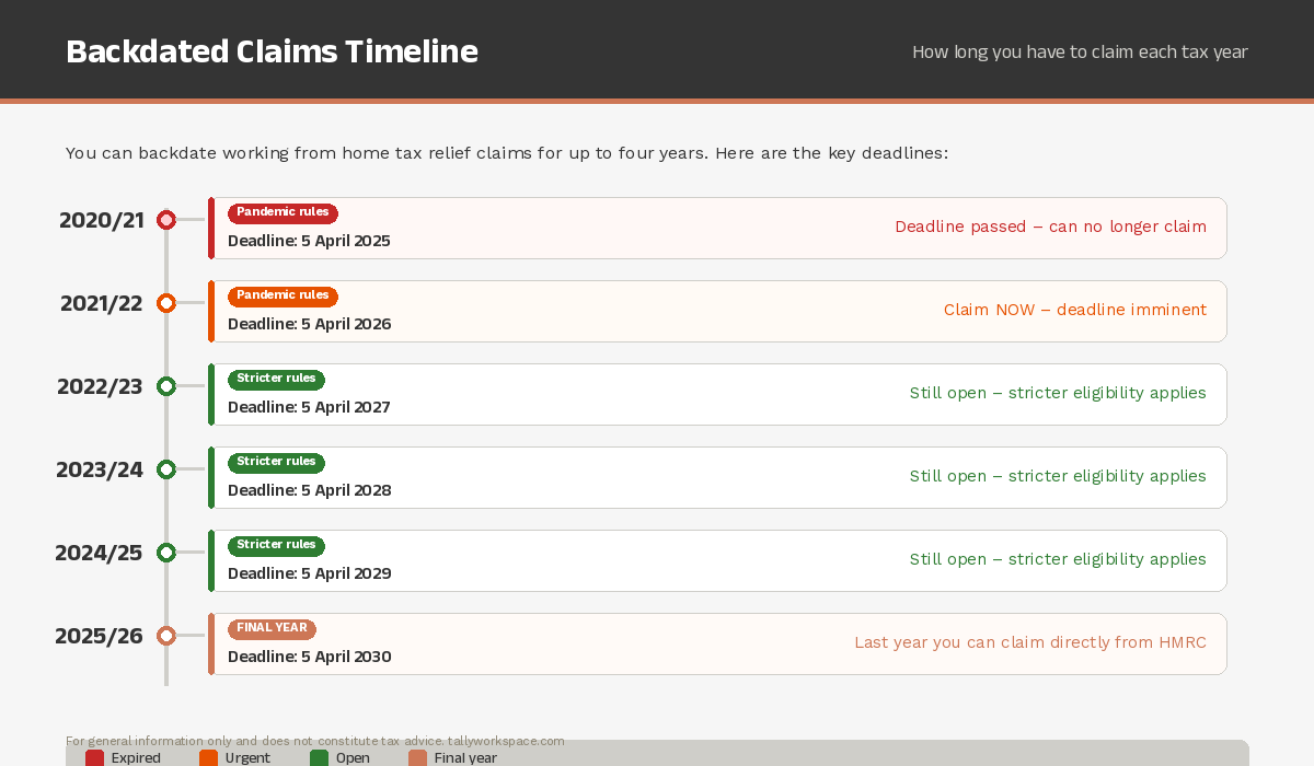 • 2025/26 tax year – claim by 5 April 2030 (final year of direct claims)