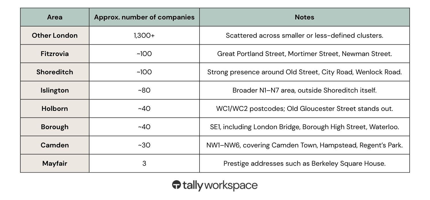 AI companies like Magentic (Borough), Xapien (Moorgate), and Speechmatics (Holborn) are tapping into central locations with strong transport links and established legal and financial infrastructure.