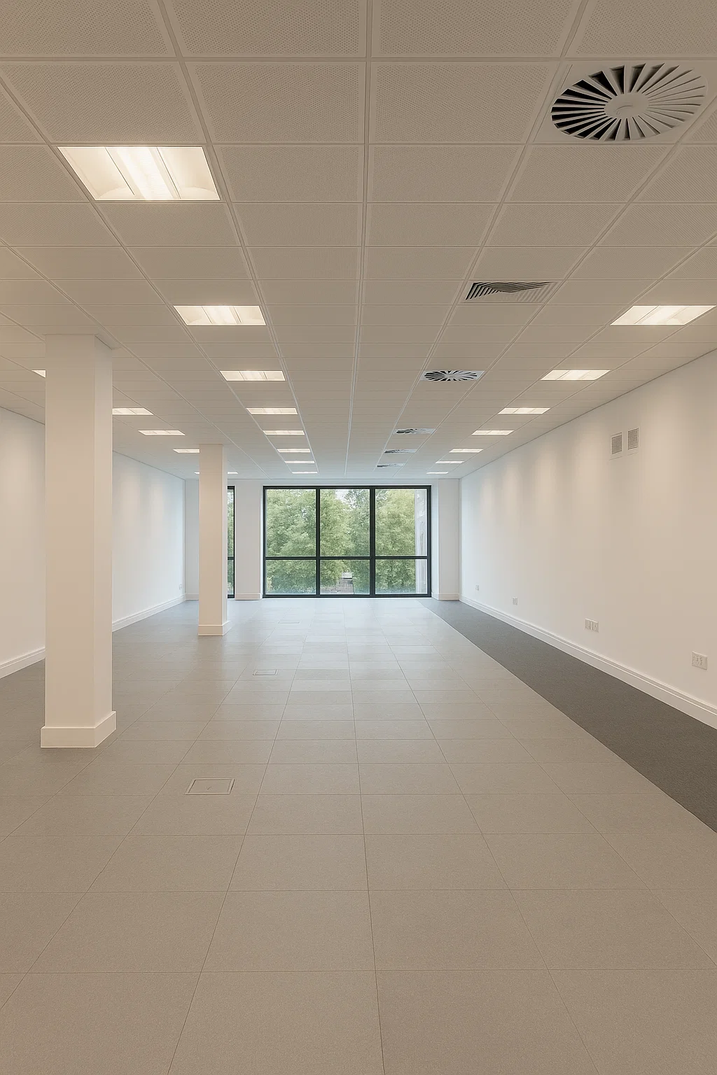 - Internal partitioning for meeting rooms, quiet zones, and offices