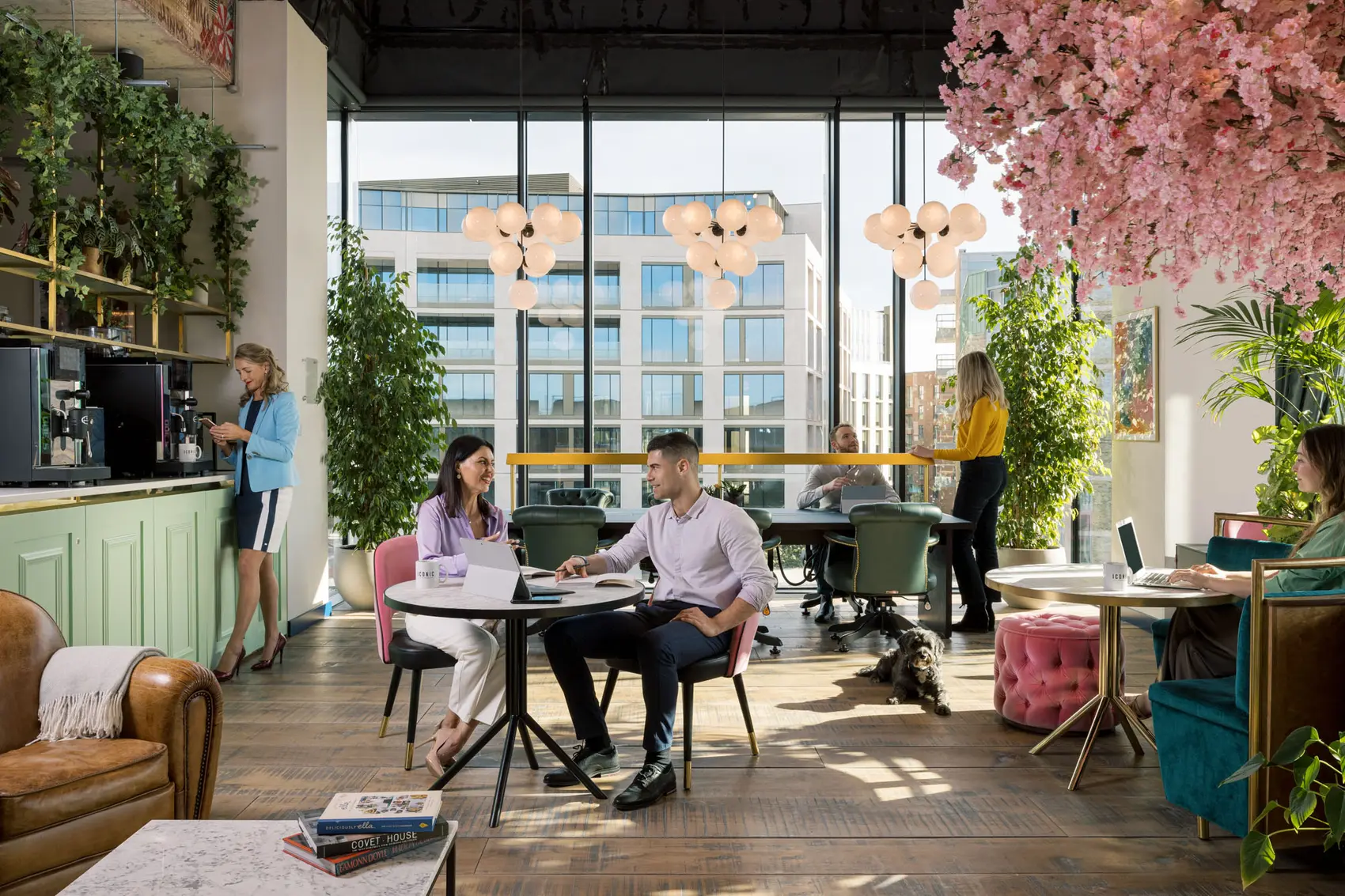 The workspace offers various settings, including private offices, coworking spaces, meeting rooms, sound-proof booths, and breakout areas, all designed to enhance health and well-being. With features such as biophilic design, a rooftop garden terrace, state-of-the-art lighting, temperature and air control, and floor-to-ceiling windows, members are provided with optimal settings to feel and perform their best.