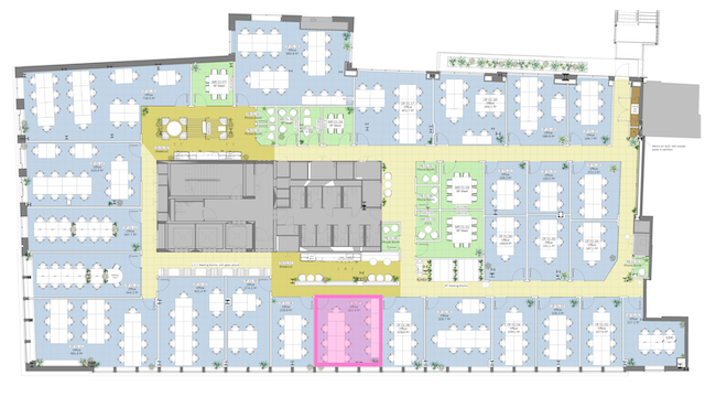 The space is open plan, with high ceilings and large windows letting in plenty of natural light. There is a large communal area with a kitchen, and a range of meeting rooms and offices of different sizes.