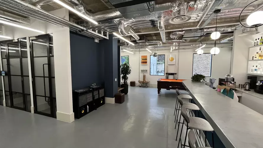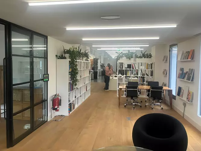 This office building exudes elegance with crisp white walls, thoughtful greenery, and ample natural light, creating a calming and inspiring office space. The spacious, open-plan layout features 10 well-appointed desks, each offering a generous working area. Beyond your dedicated space, enjoy a fully-equipped kitchen, meeting rooms, breakout areas, event space, and even showers – all designed with a stylish, clean aesthetic for ultimate convenience.