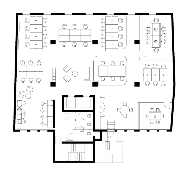 Inside, you’ll find a stylish reception and modern offices across five floors, including this superb 40-50 person workspace — fully fitted, furnished, and ready to move in with an all-inclusive monthly rent.