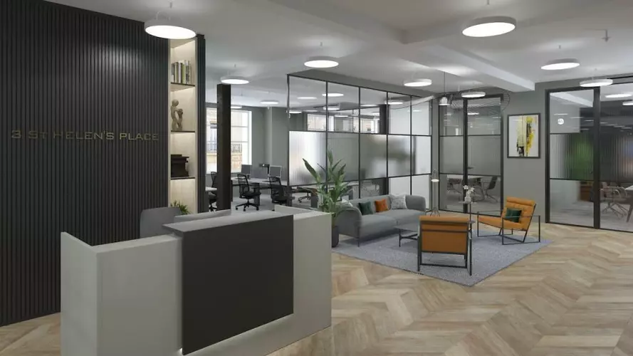 In addition to the individual office spaces, 3 St Helen's Place offers a range of shared facilities that enhance the overall value of the building. These include well-appointed meeting rooms, breakout areas, and kitchen facilities, all designed to support collaboration and teamwork. The professional reception services further ensure that clients and visitors are greeted in a welcoming manner, reinforcing the building's image as a premium business location.