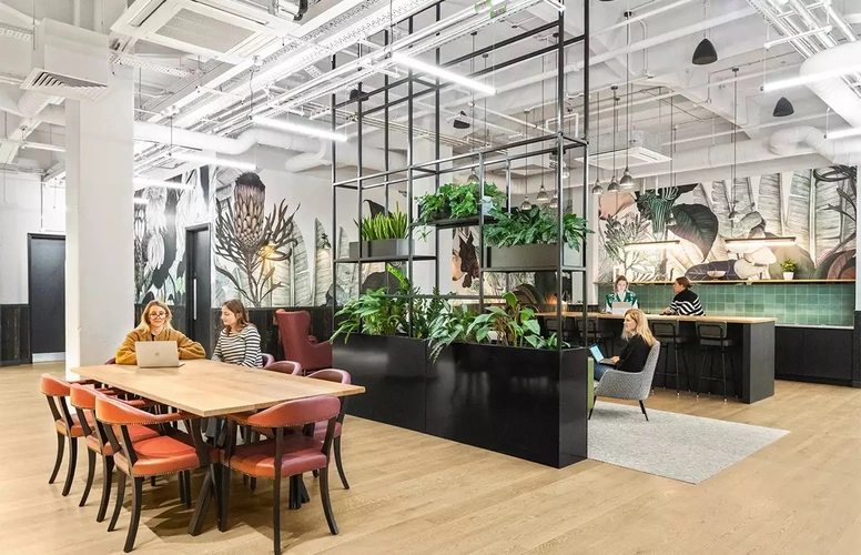 With its industrial charm, featuring elegant Crittal-style windows, high ceilings, original wooden floors, and whitewashed walls, this design classic offers a stunning space for growing companies. The lounge areas, adorned with botanical prints and comfortable leather seating, are complemented by an abundance of plants. The open kitchen and breakout area boast high tables, while elegant pendant lighting, exposed brick, and wooden paneling add to the ambiance. Enjoy the fresh air at outdoor picnic benches or on the hidden rooftop terrace with breathtaking skyline views of London. Located in West Dulwich, this South London gem combines a cozy village feel with a contemporary urban attitude.