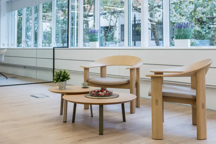 Natural light floods the interiors, creating an inviting atmosphere that enhances creativity and collaboration among teams. The stylish furnishings and contemporary finishes provide a professional backdrop for meetings and presentations, while the overall aesthetic aligns with the modern business ethos of innovation and professionalism.