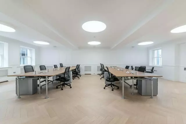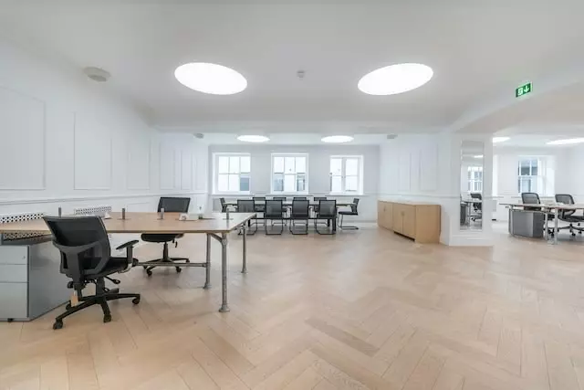 The second floor east at 47-50 Margaret Street, Fitzrovia, has undergone a thoughtful refurbishment that seamlessly combines modern convenience with a timeless aesthetic. This beautifully restored office space features industrial-style furnishings, infusing character into the workspace. Multiple elegant sash windows allow ample natural light to flood in from different angles, creating an inviting and well-illuminated atmosphere. The herringbone-style light wood flooring adds to the allure and coziness of the area. Additionally, the west side of the floor offers flexible options, serving as a versatile space for a boardroom, breakout area, or private office, catering to a range of office requirements.