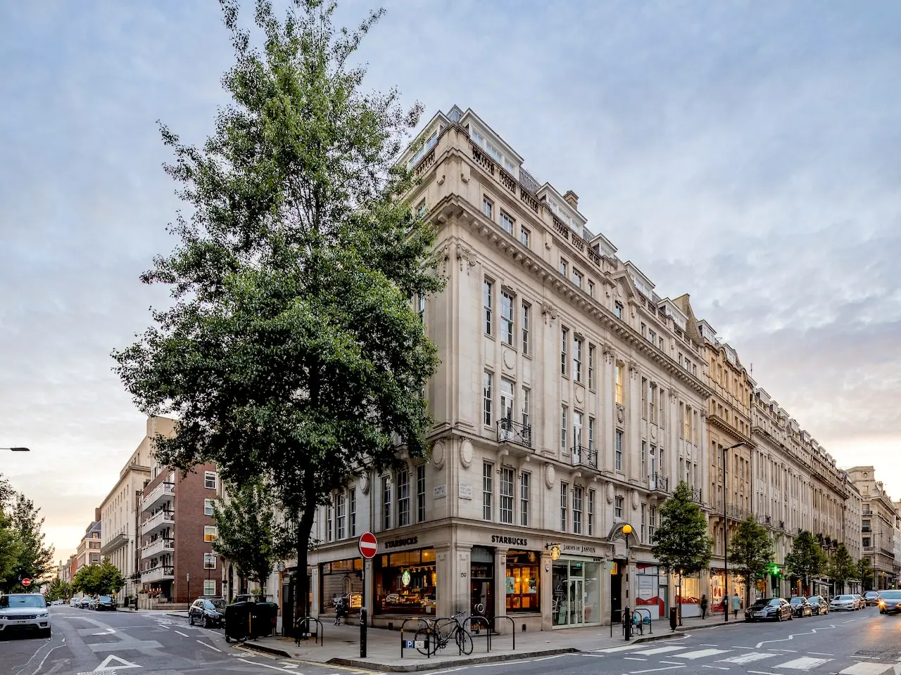 Tennyson House in London's vibrant Fitzrovia boasts a charming period facade with full-height windows, flooding the open-plan office space on the partial first floor with natural light. This move-in-ready suite features contemporary flooring, a modern kitchen, 16 desks, a breakout space, a 6-person meeting table, and a phone booth for privacy. The 1,641 sq ft space is conveniently serviced by a lift and enjoys a prominent corner location on a charming street, ideal for making a lasting impression.