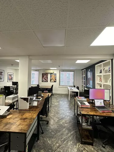 This vibrant and modern workspace, perfect for creative teams. This 16-desk office boasts an inspiring open layout with natural light, fostering collaboration and innovation. Relax in the cosy breakout space, hold meetings in well-equipped rooms, or fuel up in the communal kitchen. Modern shower facilities keep you refreshed, while excellent transport links (including King's Cross and Farringdon stations) ensure easy access.