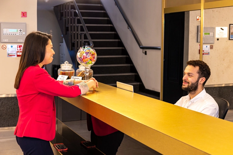 Welcome to 14 New Street, the newest addition to The Space Family. Located directly opposite Liverpool Street Station, this Art Deco hub provides an escape from the city's hustle and bustle. As you step inside, you'll be greeted by exposed ceilings in our spacious lounge area on the 1st floor, modern social spaces, bright offices, and stylish boardrooms. The Space Liverpool Street is a relaxed and convenient workspace just a few seconds' walk from Liverpool Street. With its modern design, high ceilings, and art deco building, it offers a truly unique and homely atmosphere. Our super-friendly team will warmly welcome you on the day of your meeting room or private office space booking and give you a tour of the workspace.