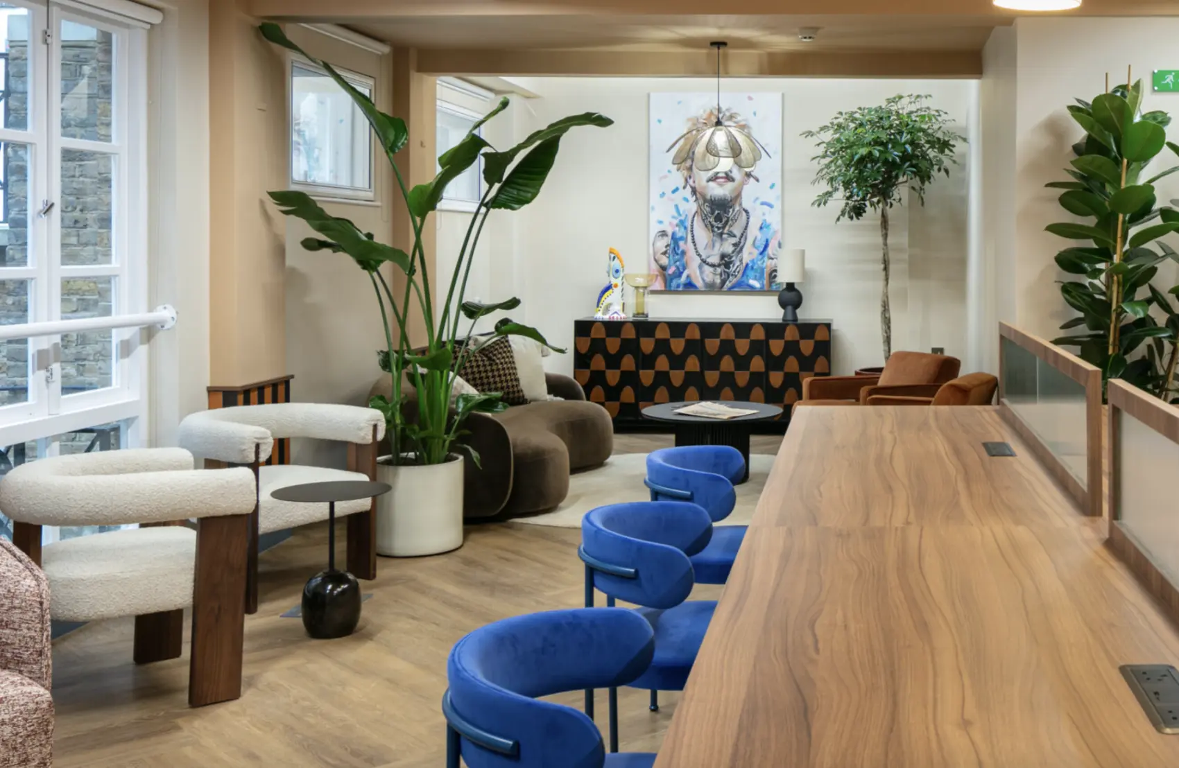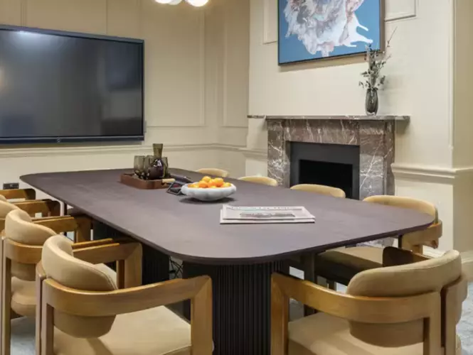 Located at 34 and 36 Queen Anne Street, these stunning spaces, launching early 2024, are designed for your business to thrive. Inspired by the legacy of these beautiful buildings, they offer modern offices, stellar amenities, and an exclusive luxury setting. The timeless and opulent interior design with an eclectic twist draws inspiration from the building's Georgian heritage, carefully balanced with contemporary forms. Bold bursts of contemporary, locally sourced art and considered vintage pieces adorn the interiors. Blending modern workspace design with carefully designed private office space, these properties provide small to medium-sized businesses with an ideal new workspace in a perfect location.
