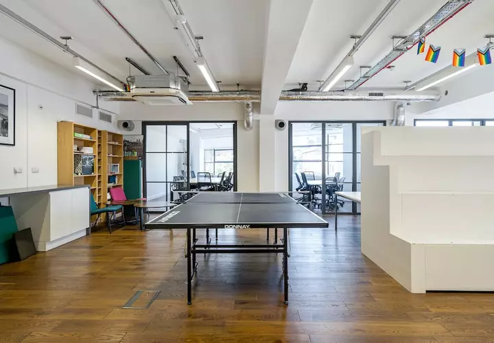 This high-spec, fully furnished office in Shoreditch offers a perfect blend of functionality and style. Focus and collaborate in a spacious open-plan area, well-equipped kitchen, and stylish meeting rooms with crittal glazing windows. Enjoy a comfortable work environment with excellent natural light, on-site bike storage, and shower facilities.