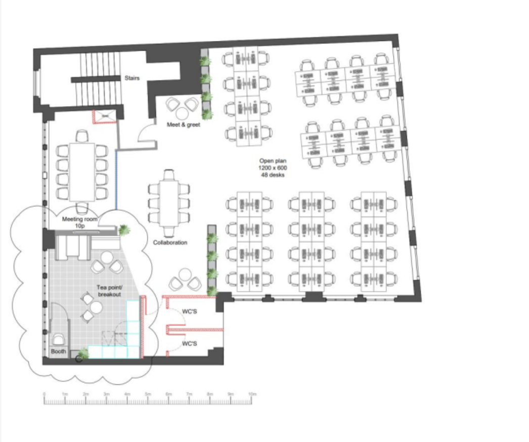 Spanning 2104 sq ft, it provides ample room for productivity and collaboration with 48 desks available. The furnished 10-person boardroom is perfect for important meetings, while the breakout areas foster creativity and teamwork. Need a private space for calls? The phone booth has got you covered.
