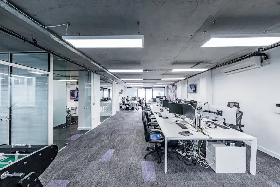 This contemporary and self-contained office building offers an unparalleled business address. The open-plan workspace boasts a generous layout with 18 desks, an internal executive office for up to 4, and a dedicated meeting room, providing the perfect canvas to cultivate your company culture and collaboration. Fully self-contained, the space offers ultimate convenience with a compact kitchenette, coffee machine, on-site showers, and even a refreshing outdoor terrace for breaks or entertaining. Fun breaks are guaranteed with a pool table, while wall-mounted TVs allow for presentations or media displays. Additionally, storage units ensure that the area stays organised.
