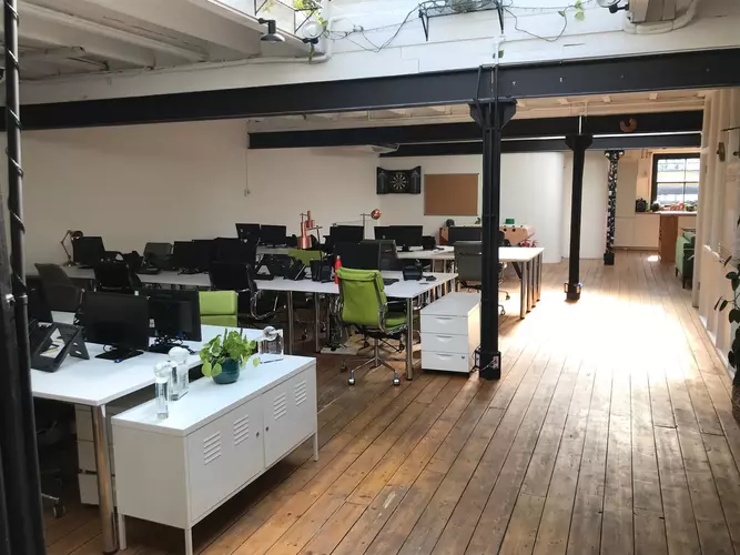 This modern 5th-floor office boasts an open layout with ample desks, ergonomic chairs, and abundant natural light for a productive and collaborative atmosphere. Enjoy exclusive use 2-3 days a week, with a recruitment agency occupying the space on the remaining days. The office features a spacious work area, a fully-stocked kitchen with breakfast supplies, snacks, and a coffee machine, two meeting rooms for private discussions or video calls, and a boardroom ideal for larger meetings.