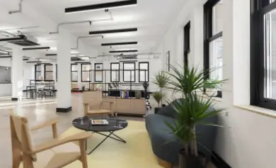 With a bright and open meeting room and events space, The Shepherds Building sets the stage with wooden floors and a comfy communal seating area, complete with a bonus pool table. The open-plan Coterie Cafe offers an array of hot drinks, including excellent coffee, as well as juices, pastries, cakes, yoghurt, granola, and freshly made sandwiches. Lounge areas boast plush velvet sofas and leather seating, perfect for relaxed catch-ups, while sleek, minimally styled studio spaces and a huge communal area provide ample working space. Outside, a cosy courtyard area awaits, complete with picnic benches.