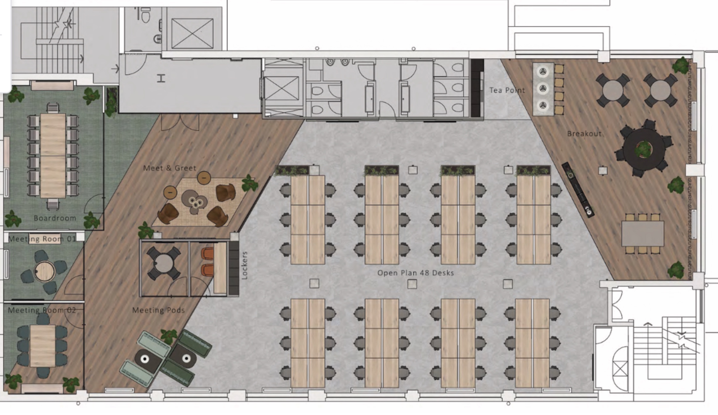 The surrounding area further enhances the appeal of Base 14, with a variety of cafes, restaurants, and shops within walking distance. This vibrant locale not only provides employees with ample options for lunch and after-work socializing but also creates an engaging atmosphere that contributes to overall job satisfaction and work-life balance.