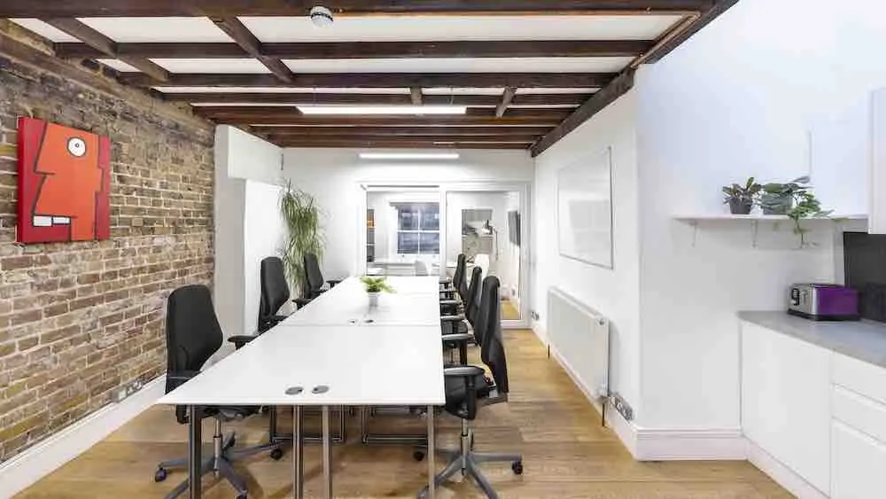 189-190 Shoreditch High Street E1 6HU is a modern office space that offers an abundance of character and charm. Located in the heart of London's most vibrant area, this warehouse-style office space seamlessly combines timber beams, exposed brick walls and Thierry Noir artworks to create a distinctive and stylish workplace.