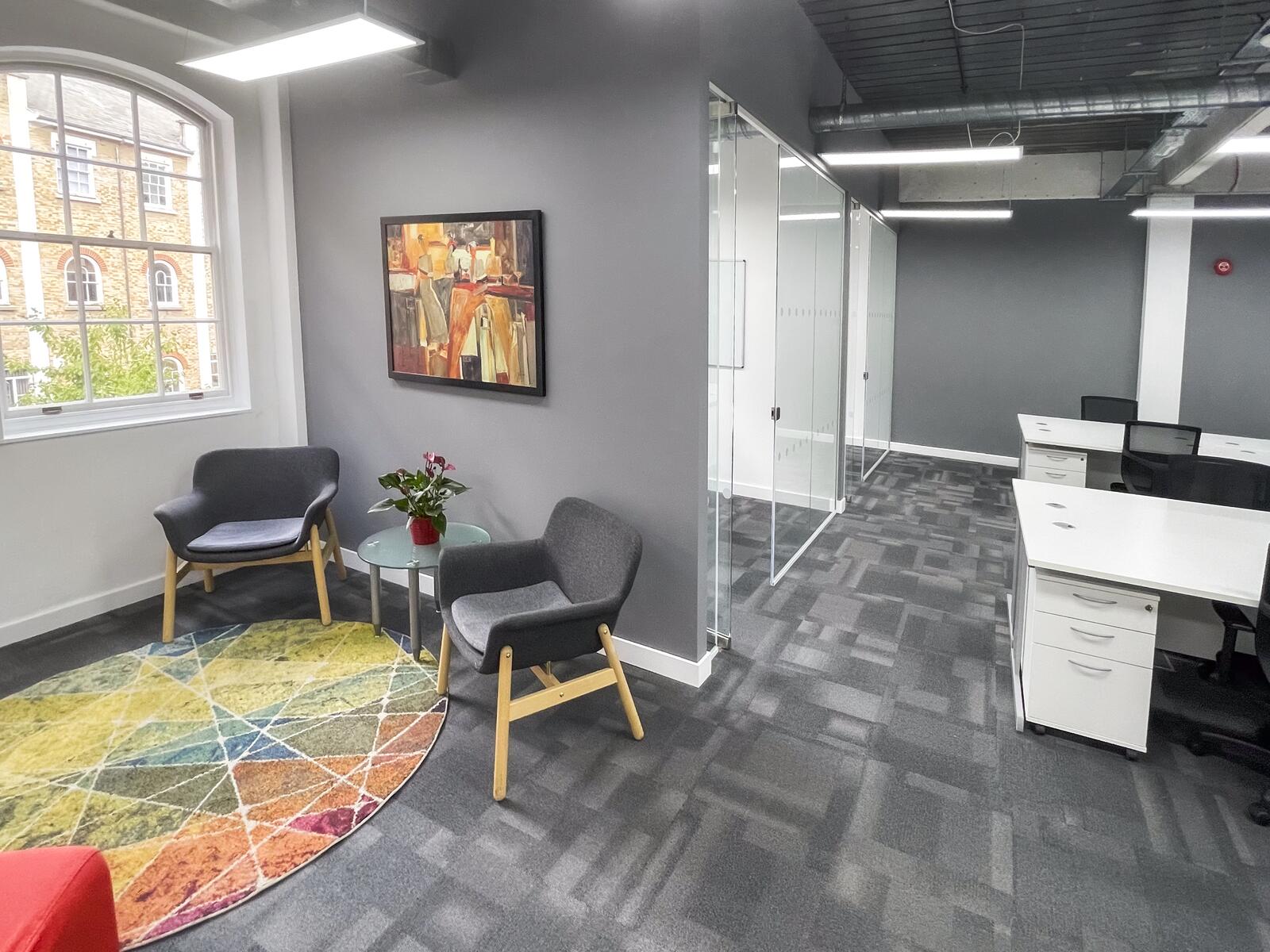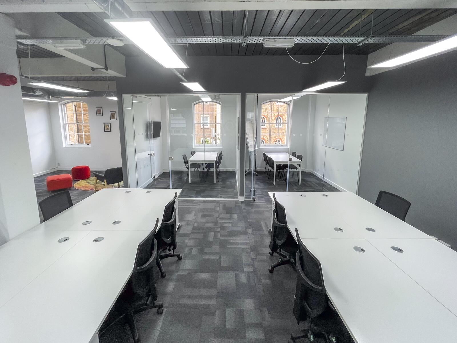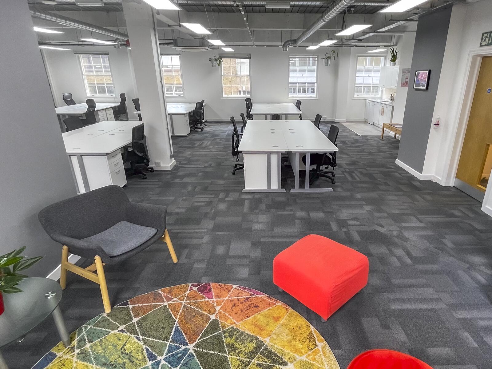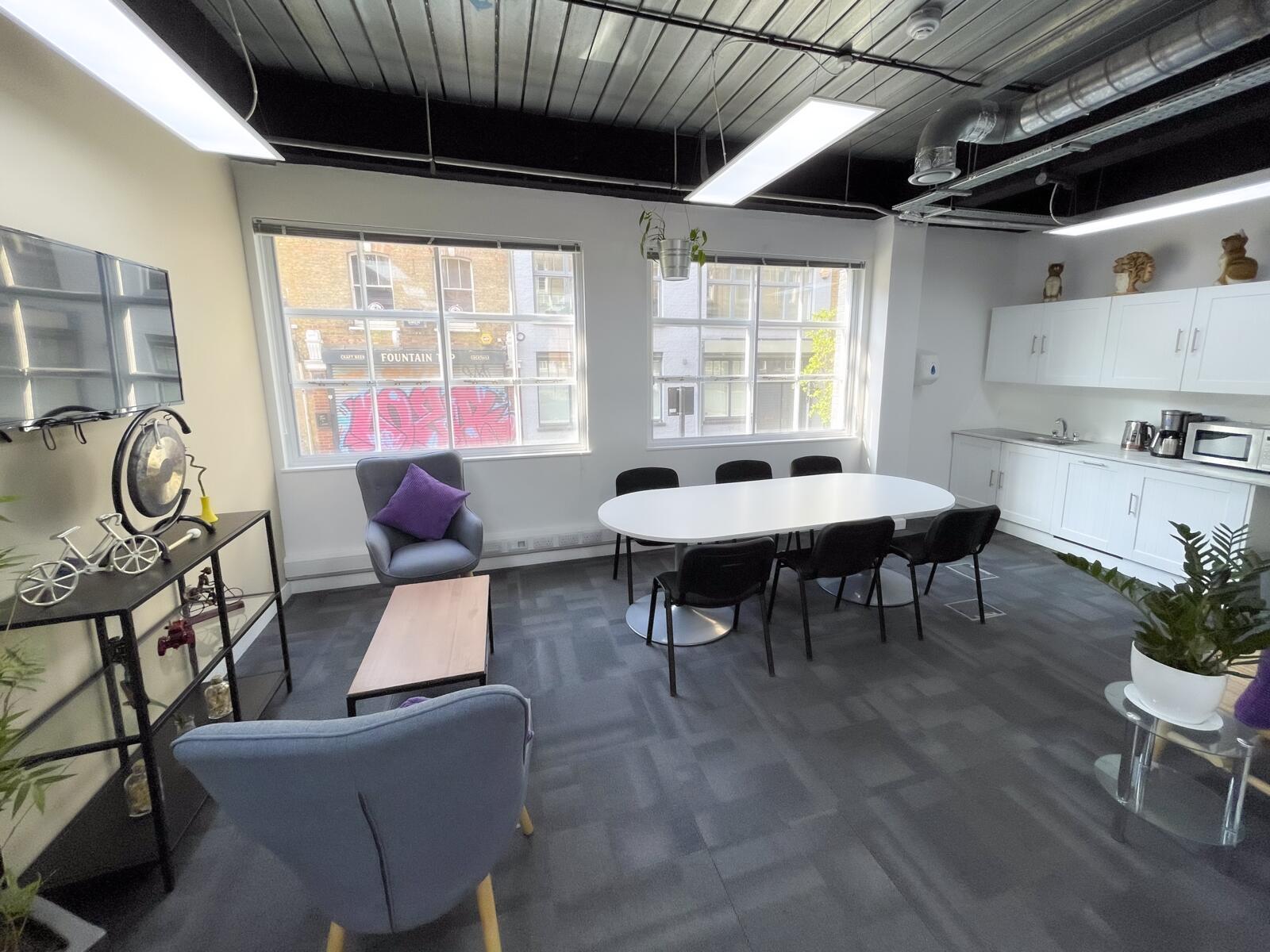 2 Bath Place is a fully self-contained office space set within a peaceful cobbled courtyard, just moments from the energy of Shoreditch. It offers a private working environment complete with its own meeting room, kitchen and lounge areas—ideal for teams looking for independence and a quiet space to focus. With excellent natural light, original features, and a warm, professional atmosphere, it’s well-suited to creative and growing businesses. The location is just a short walk from Old Street and Shoreditch High Street stations, with great cafés, shops and restaurants nearby.