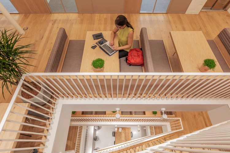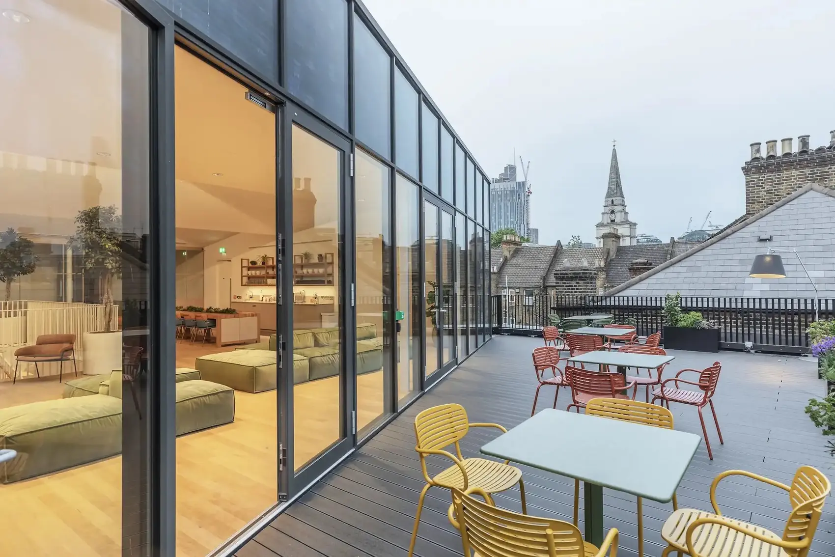 Fora Brick Lane in London is a unique and contemporary workspace located just off Brick Lane at 42 Princelet Street. It offers flexible office space with double-height windows that flood the top-floor Residents' Lounge with natural light. The building also has meeting rooms, shared spaces and a fully-stocked kitchen for those who need it.