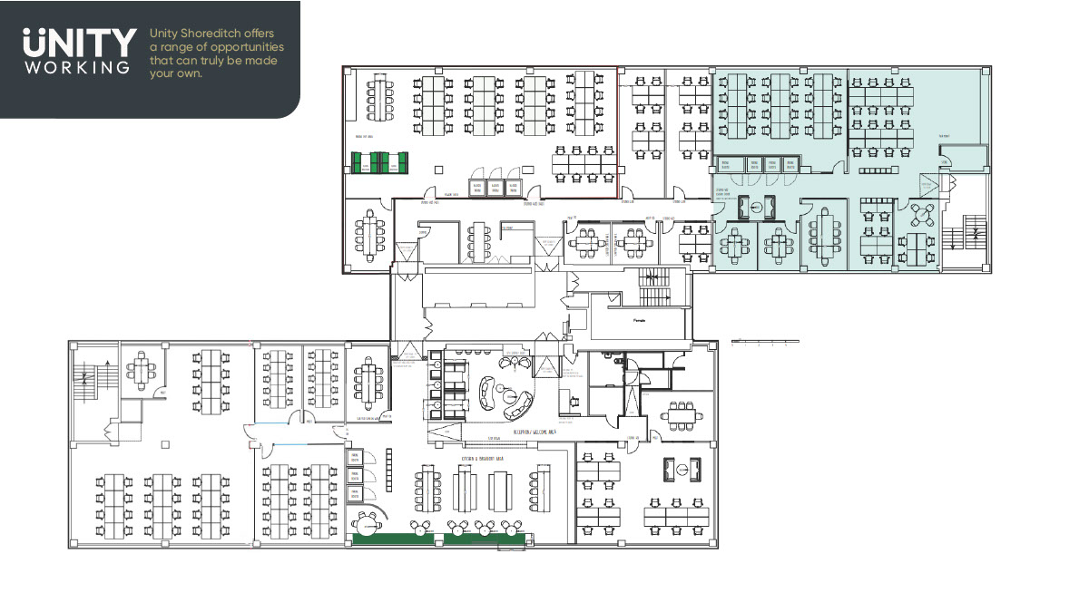Welcome to Unity Shoreditch! Our office space is located in a vibrant community that values creativity, entrepreneurship, culture, and heritage. We offer 15,000 sq ft of office space with different options to suit your needs. You can choose a fully serviced private office, or a bespoke, fully fitted floor on a managed deal. Our space features ample natural light that floods into the open-plan reception and breakout areas, creating a warm and welcoming atmosphere. In addition, you’ll be surrounded by natural materials, greenery, and great coffee - this space is created to make you feel at home, at work