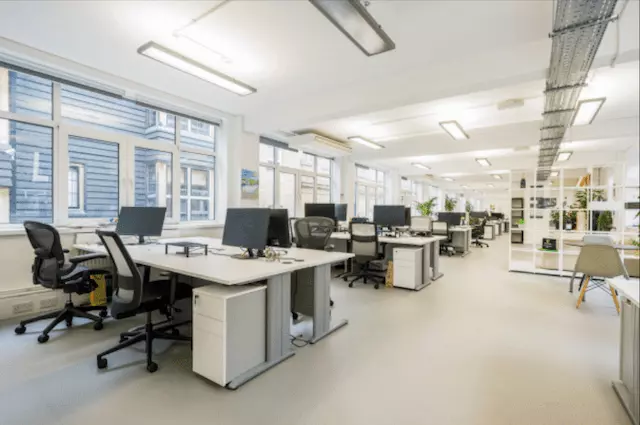 55 Greek Street offers a fully furnished and well-equipped office space. With a generous open-plan desk area, a boardroom, two meeting rooms, a kitchen, and a cozy breakout space, it provides everything you need. The office boasts high ceilings and large windows on two sides, creating a welcoming and bright atmosphere with ample natural light.