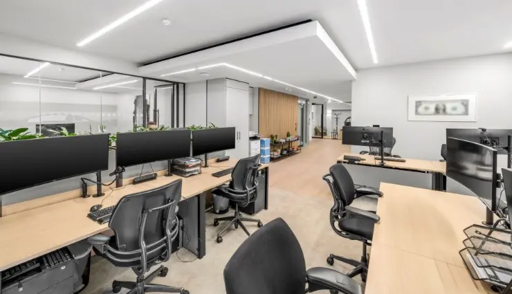 The interior of the building exudes sophistication, with beautifully designed workspaces that reflect the character of the surrounding area. Natural light floods the offices, creating a pleasant and inviting atmosphere. The layout is flexible, allowing businesses to customize their spaces according to their specific requirements. This adaptability is particularly beneficial for companies looking to scale their operations or create unique work environments that align with their corporate culture.