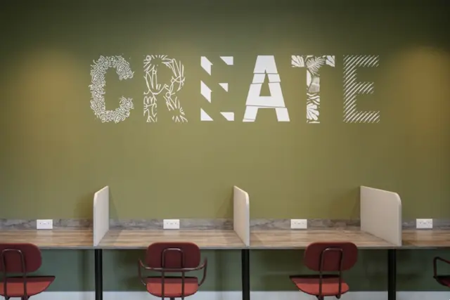 The ground floor features an open plan co-working area as well as Zoom rooms, and phone booths so you'll have plenty of resources to collaborate with others. There are also meeting rooms equipped with the latest technology where teams can conduct important zoom calls or conference calls with colleagues around the world. For those who prefer some quiet time alone, separate phone booths provide privacy and peace of mind when making critical business decisions.
