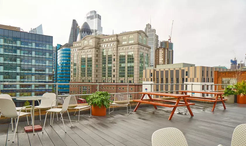 The contemporary office spaces are designed with art-deco pastel colour palettes. The venue is just a short walk from Aldgate East station, and is conveniently close to shops, restaurants, and other amenities.