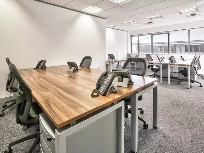 Newport's Excalibur House elevates the serviced office experience with its sophisticated ambience. The stunning contemporary reception featuring a glass entrance and walnut details sets a memorable first impression. Move-in ready offices equipped with high-speed internet, dedicated phone lines, voicemail, and sleek furniture offer immediate functionality. Walnut desks complement the floor-to-ceiling walnut doors, while natural light floods many offices through panoramic windows. Professional and friendly reception staff answer calls in your company name, ensuring seamless service. Ample on-site parking adds convenience, making Excalibur House the ideal blend of style, functionality, and ease for your business needs.