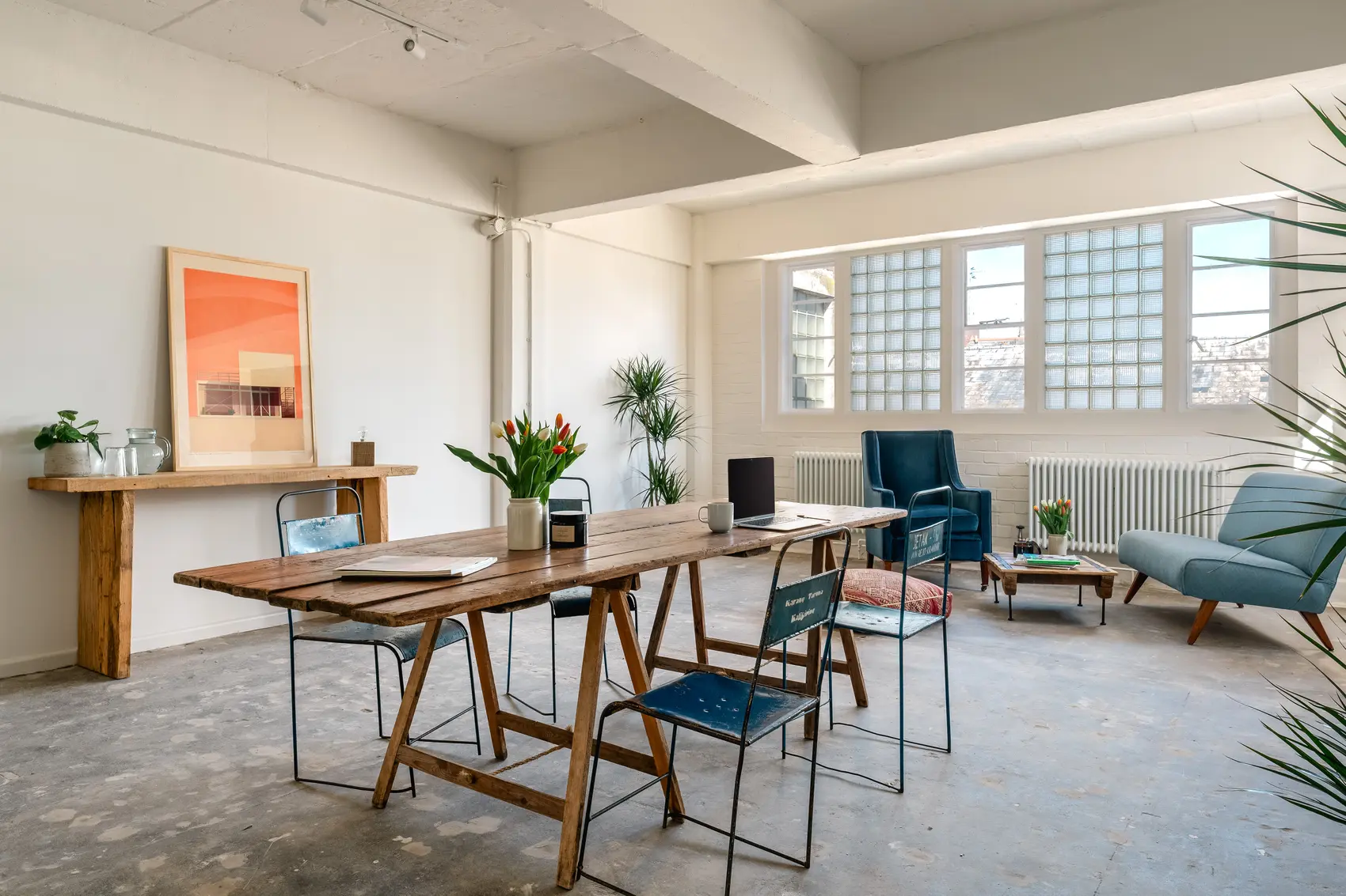 Providing an inspiring environment for creative businesses, the studios are filled with natural light and situated in an area rich in culture, fostering collaboration both within the space and its surroundings. The rooftop terrace provides unobstructed views of the city skyline, making it perfect for hosting events, yoga sessions, or simply offering a space to relax, encouraging authentic connection and meaningful partnerships. Parking is conveniently located less than a 2 minute walk away.